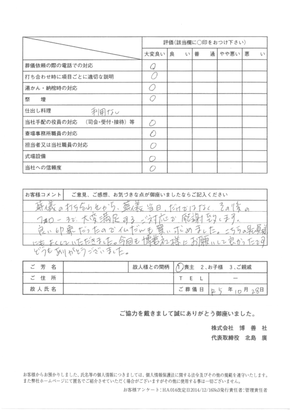 葬儀の打ち合わせから最後まで、ご満足いただけたことを、